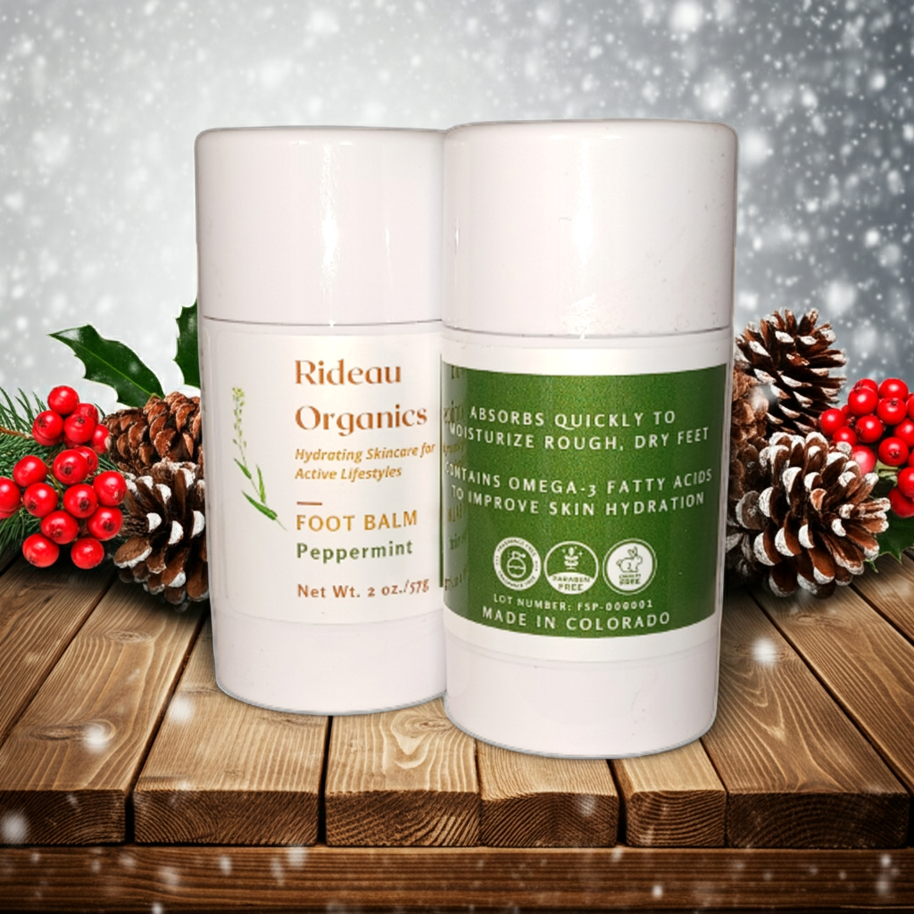 Other key ingredients in peppermint foot balm are beeswax, shea butter, and camelina oil. These ingredients work together to quickly hydrate your foot, lock-in moisture, protect and repair cracks. Beeswax is a humectant and combined with other beneficial plant-based ingredients, prevents further dryness and are natural emollients easily absorbed into the skin, providing deep hydration. Shea butter is rich in vitamins and antioxidants, making it a great moisturizer for dry and damaged skin. Camelina Oil has Omega 3 Fatty Acids for anti-inflammatory benefits.